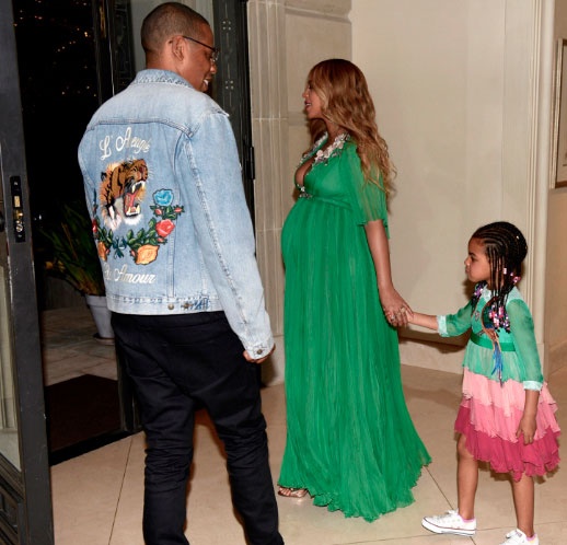 La intérprete de 35 años y su hija de cinco usaron outfits verdes perfectamente combinados. Beyoncé, quien actualmente espera mellizos, usó un vestido de chiffon y tacones Alaia de 1.760 dólares.