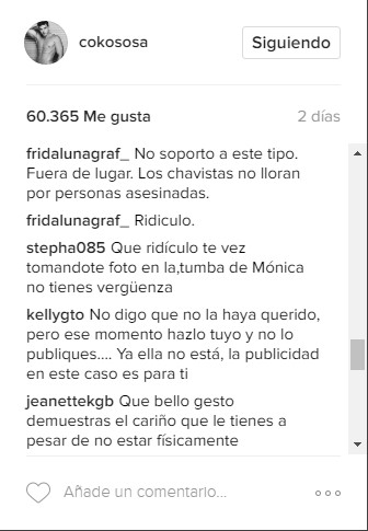 En su cuenta de Instagram, el actor publicó una imagen donde aparece sentado frente a la tumba de Spear, en el Cementerio del Este, en Caracas y escribió: “Tu energía me llena cada día… Feliz día a todas las mujeres @monicaspear”, escribió a pie de la fotografía.