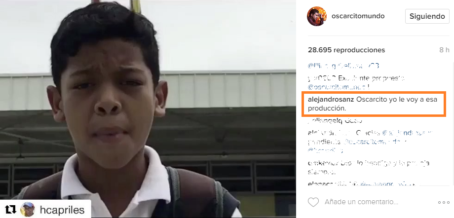 Eso fue lo que ocurrió con un jovencito que se volvió famoso a través de las redes sociales, y es que gracias a la publicación de un video por medio de Instagram del gobernador del estado Miranda, Henrique Capriles Radonski, y al posterior repost del cantante Oscarcito, ahora el mismísimo Alejando Sanz tiene que ver con esto.