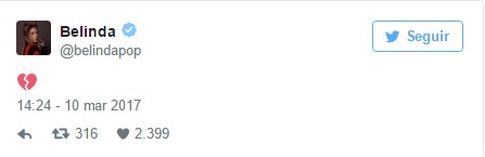 Hasta el momento no hay pronunciamiento oficial sobre el estado de salud del ilusionista. Mientras tanto Belinda posteó un corazón roto en su cuenta oficial de Twitter.
