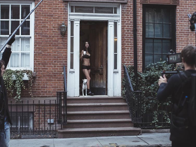 La británico-estadunidense de 25 años recorrió las aceras de Manhattan con sexy ropa interior negra para la campaña Primavera/Verano 2017 de Donna Karan (DKNY).