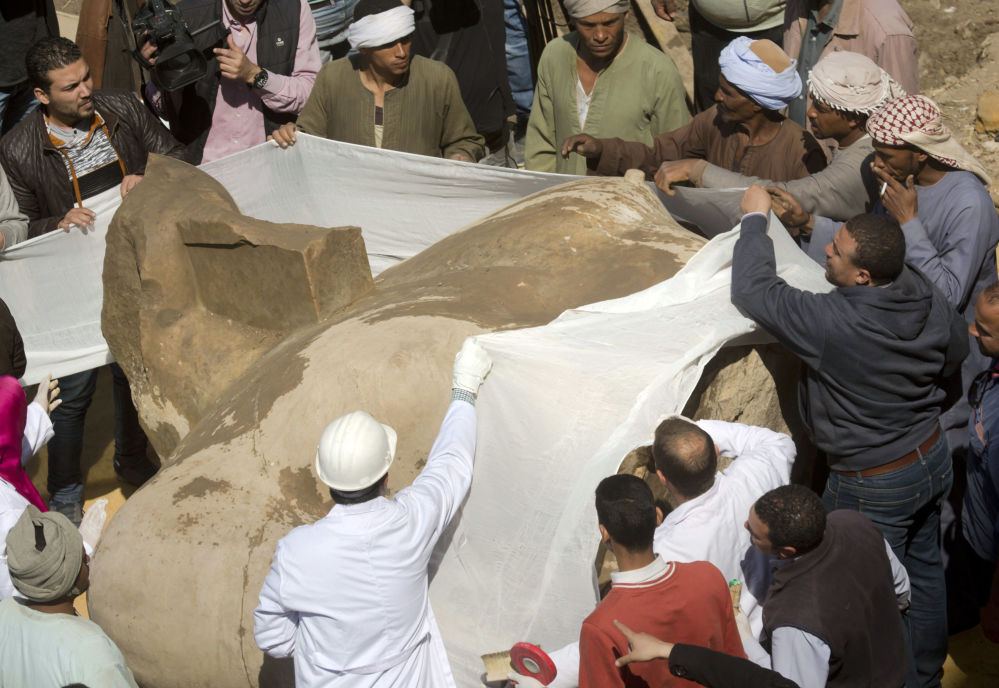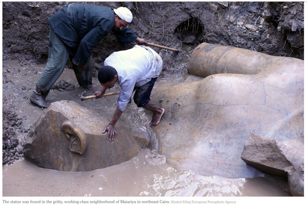 Mahmud Afifi -jefe del Ministerio de Antigüedades del país- explicó que fue utilizada una gran maquinaria para sacar la cabeza, ya que es la parte más pesada, pero que se colocaron barras de madera y corcho para garantizar que las piezas no sufrieran daños. La excavación se llevó a cabo bajo la supervisión de los arqueólogos, dijo e indicó que el resto de la estatua -de aproximadamente ocho metros de altura- permanece bajo el lodo, por lo que, de acuerdo al diario Daily News Egypt, se estudian nuevos métodos de extracción.