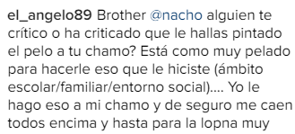 Este cambio ha desatado críticas que acusan a Nacho de irresponsable por haber permitido a su hijo teñirse el cabello a tan corta edad, a pesar de que es su hijo mayor.