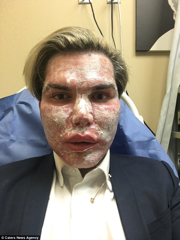 Su más reciente intervención consistió en quemarse una capa de piel del rostro con un sistema de rayos láser CO2 para que la que surja debajo parezca «piel de bebé» o de «porcelana».