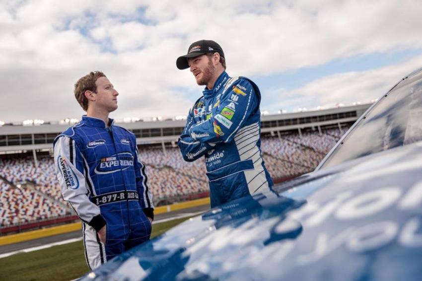 Tras recibir lecciones y una vuelta de prueba con el piloto Dale Earnhardt Jr, Mark Zuckerberg manejó en el circuito de Charlotte en Carolina del Norte. El piloto profesional Dale Earnhardt Jr. fue el encargado darle una vuelta de prueba al empresario y después Zuckerberg tomó el volante.