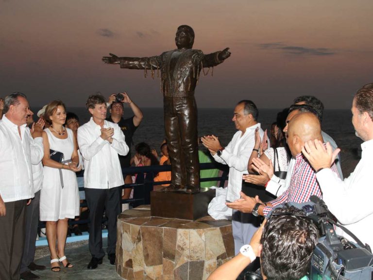 Una estatua de Juan Gabriel fue desvelada en el balneario de Acapulco, en un festivo acto oficiado por el gobernador del estado de Guerrero, Héctor Astudillo, y el secretario mexicano de Turismo, Enrique de la Madrid.