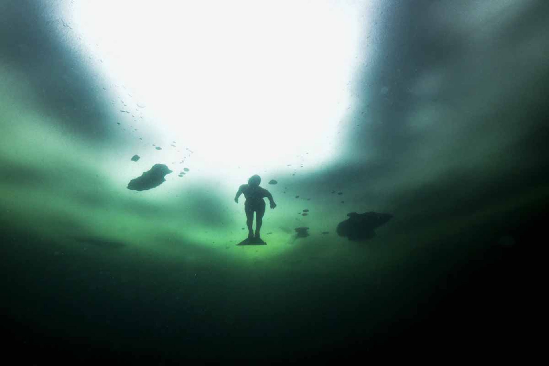 Lo más importante para Johanna bajo el agua es no entrar en pánico. El agua debajo de un lago congelado es casi totalmente oscuro. La poca visibilidad puede ser peligrosa especialmente porque es posible perderse.