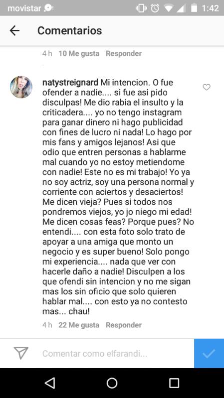 Este mensaje en vez que calmar las cosas avivó el fuego y cientos de personas le «Cayeron encima» a la actriz quién finalmente decidió bloquear a sus «haters»
