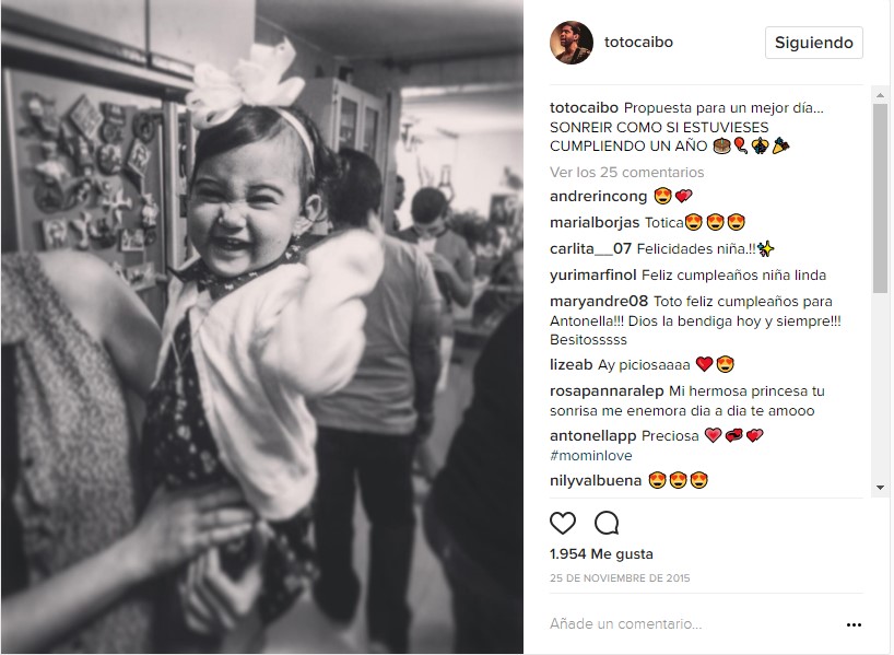 Con una foto de la pequeña en blanco y negro, en su cumpleaños número dos, el integrante del dúo zuliano Caibo expresó: «me impidieron abrazarte nuevamente, no permitieron que te dijera cuánto te amo».