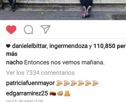 El también Edgar Ramírez celebró la iniciativa de Nacho con un breve comentario a la instantánea.