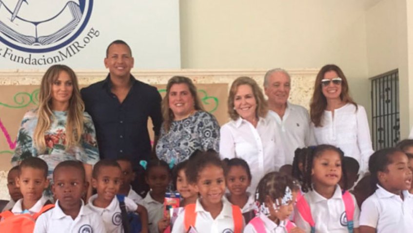 La cantante y actriz Jennifer López y su pareja, el exastro del béisbol Alex Rodríguez, visitaron este lunes la sede de una fundación que acoge a niños de escasos recursos en la ciudad dominicana de La Romana (este), a quienes entregaron útiles escolares, según destacó la prensa local.