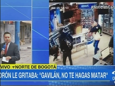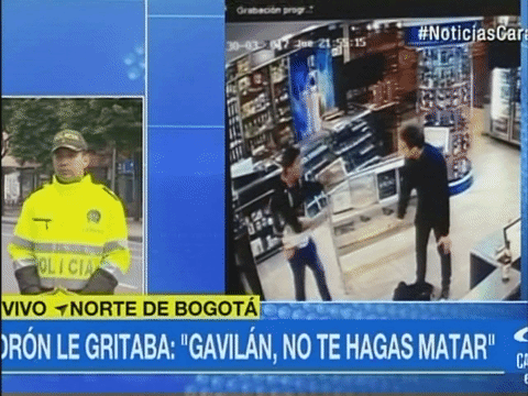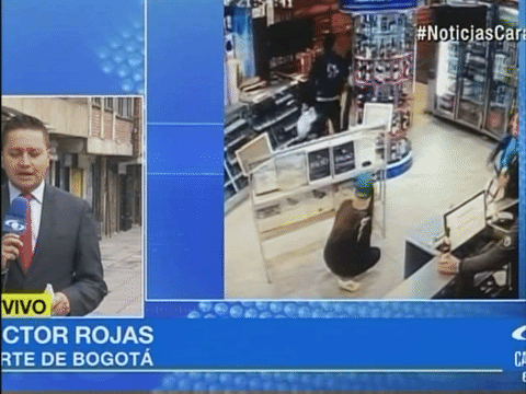 En la grabación, obtenida por Noticias Caracol, se ve al delincuente apuntándole con el revólver al actor. Baptista trata de calmarlo, pero el ladrón continúa amenazándolo y hasta lo somete contra un mostrador del almacén.