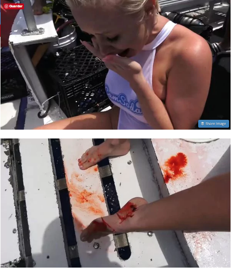 Molly salió a la superficie llorando y aterrada, sin que el resto de la tripulación y del staff supiera qué había sucedido. Una vez en cubierta, la actriz mostró una profunda herida en el tobillo, el video es realmente aterrador.