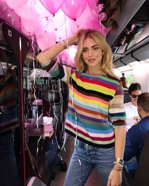Como en toda celebración relevante, los amigos y la familia de Chiara realizaron un vídeo Instagram friendly deseándole lo mejor para este nuevo año. Sin embargo, lejos de ser un vídeo cualquiera, ha contado con la colaboración especial de Alberta Ferretti. La diseñadora, que ha elegido a Chiara como embajadora de su firma en más de una ocasión, ha customizado su jersey estrella (el de los días de la semana) con el nombre de la influencer y los años que cumple… en todos los colores del arcoiris.