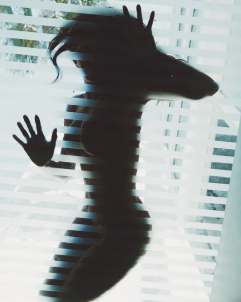 Detrás de una ventana que cubrió parte de sus senos, la actriz generó furor por su moldeada figura.