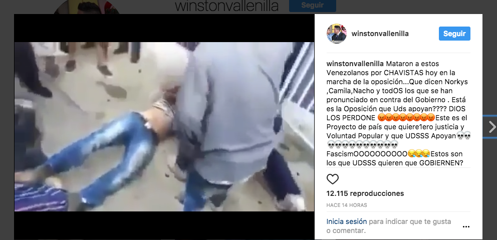 Muchos videos que circulan son manipulados o no se corresponden al país, como ocurrió El famoso conductor de televisión venezolana Winston Vallenilla quién publicó un video sobre un sangriento linchamiento afirmando: «Mataron a estos Venezolanos por CHAVISTAS hoy en la marcha de la oposición…»