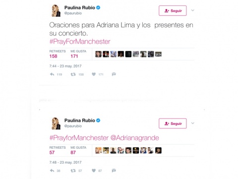 Para sumarse a la condena pública por las explosiones en un concierto de Grande en Manchester, que dejaron como saldo 22 muertos, varios de ellos adolescentes y hasta niños, y 59 personas heridas, Pau escribió sus condolencias y pidió oraciones pero no para la desgracia tras el show de la cantante sino por la modelo de la firma Victoria’s Secret.