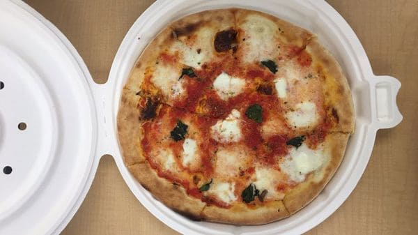 La caja es redonda y mantiene la pizza bien contenida. El diseño es de Francesco Longoni, jefe de Apple Park café, y ha sido patentado hace siete años, aunque por el momento la compañía no la ha comercializado.