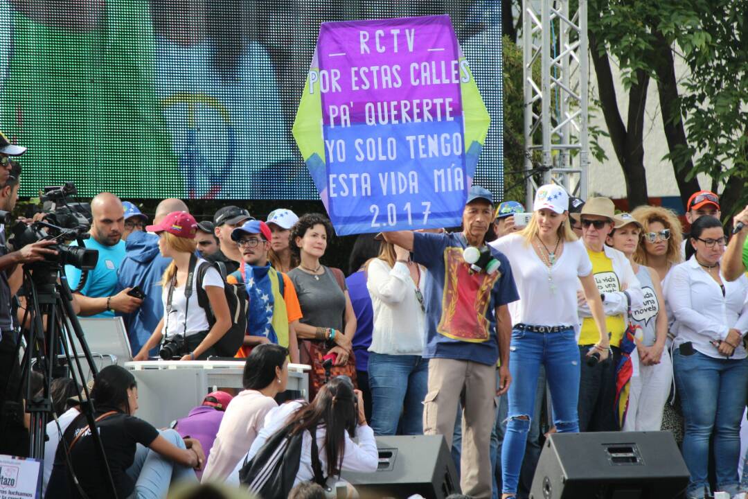 En Caracas, luego de haber salido desde varios puntos de concentración, los manifestantes se reunieron en la plaza Alfredo Sadel de Las Mercedes, dónde figuras notables del desaparecido canal, estuvieron presentes para congeniar con los presentes. En la tarima, estuvieron personalidades como Camina Canabal, Amanda Gutiérrez, Nelson Bustamante, Javier Vidal, Ivette Domíguez, Richard Linares, Anna Vacarella, entre otros.