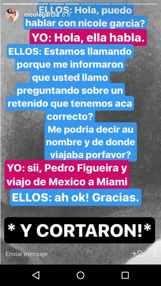 Así mismo José y Nicole García, amigos de Pedro, denunciaron mediante sus redes sociales que fueron informados de su detención la madrugada de este lunes, inmigración tuvo contacto telefónico con uno de ellos donde solo preguntaron su nombre y cortaron de manera repentina, así como se puede apreciar en estas historias de Instagram: