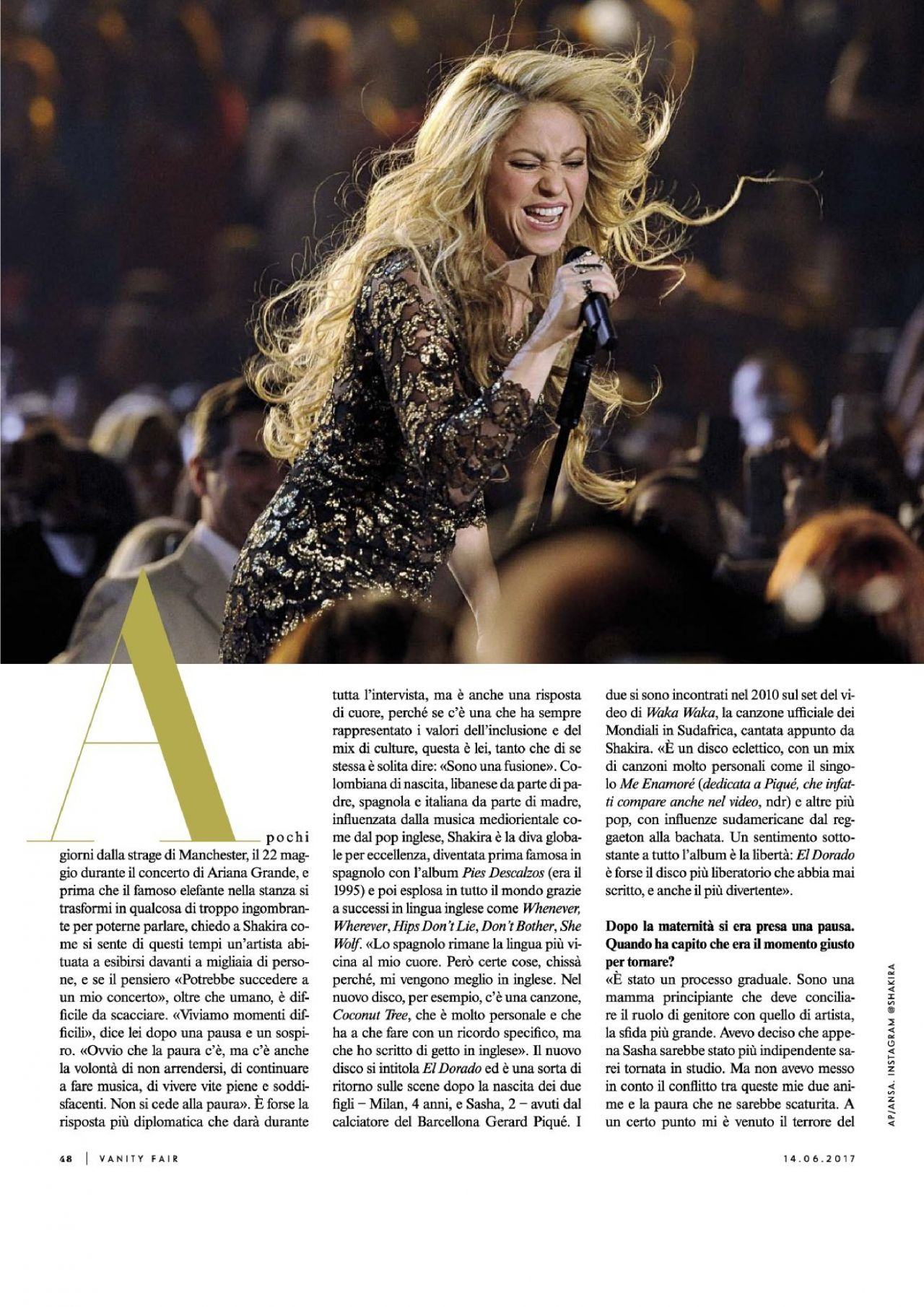 Vestida de dorado, con el cabello ‘a medio hacer’ y con una mirada que refleja serenidad, la cantante barranquillera Shakira aparece en la portada de la versión italiana de la revista, de cultura y moda, Vanity Fair para el mes de junio.