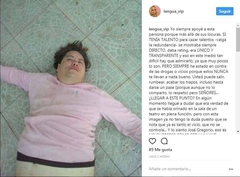 Posteriormente, según relata en la imagen que se puede ver al también actor tirado en el suelo, varias personas le tomaban fotos y nadie lo ayudaba, a lo que le sugirió tener mucho cuidado con un presunto consumo de “sustancias peligrosas”.