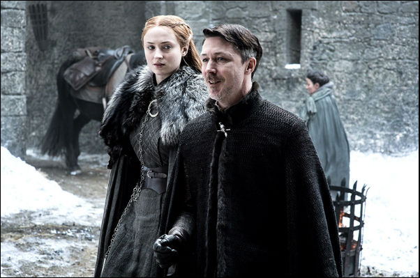 En la primera fotografía, La Madre de Dragones se acerca a su trono en Rocadragón. En la segunda, la joven Stark camina por Invernalia junto a Meñique (Aiden Gillan). ¿Estará pensando en traicionar a su hermano Jon Nieve (Kit Harington)?