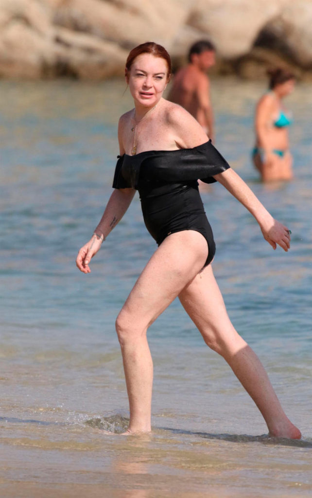 La estrella lució un traje de baño negro off the shoulder que dejó al descubierto (otra vez) la descuidada figura de Lindsay.