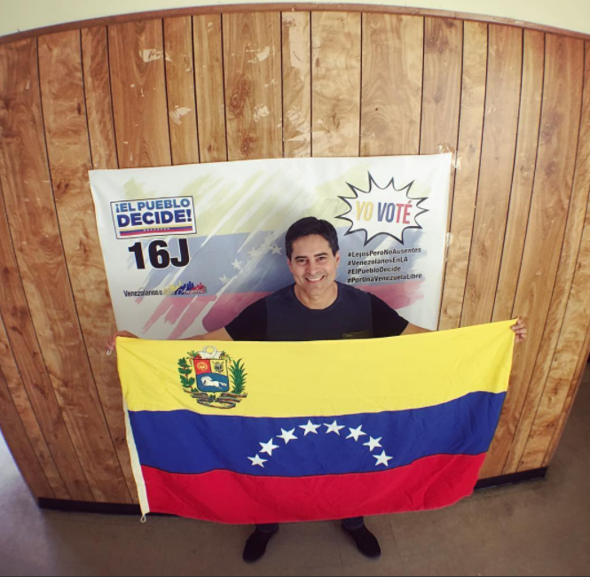 A través de su cuenta de Instagram el venezolano publicó una fotografía donde se le ve formando parte del mismo. Esta consulta popular dio un resultado de 7 millones y medio de votos que ratifican el rechazo al gobierno actual, más de 1 millón de personas votaron en el exterior.