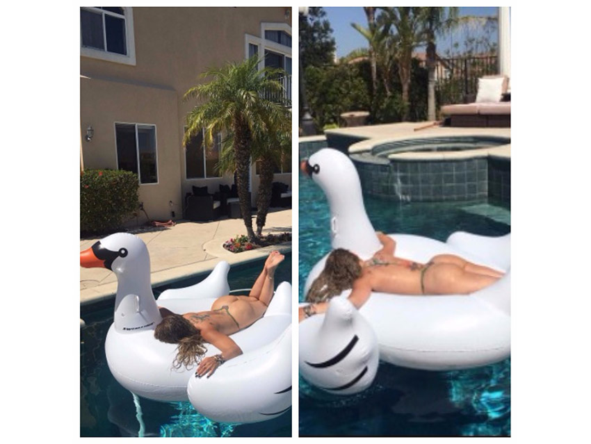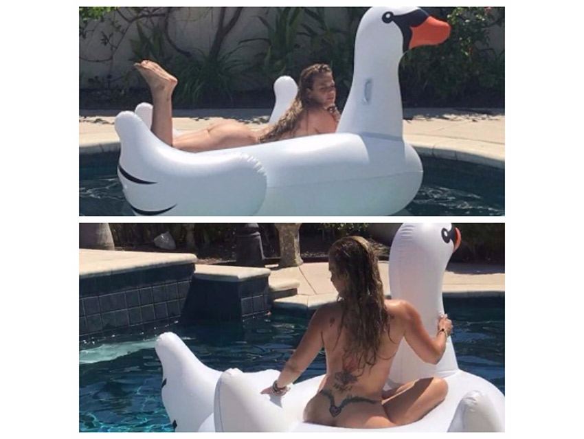 Aunque su idea inicial fue presumir su casita y su piscina, el aparecer sin nada de ropa se robó toda la atención e hizo que las imágenes publicadas en su Instagram se viralizaran.