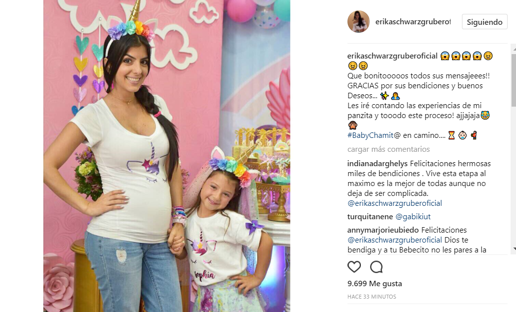 Pues esta vez fue su propia madre quien la puso en evidencia publicando una foto del cumpleaños de su sobrina Sofía, donde se le puede ver un prominente abdomen que casi confirma la noticia.