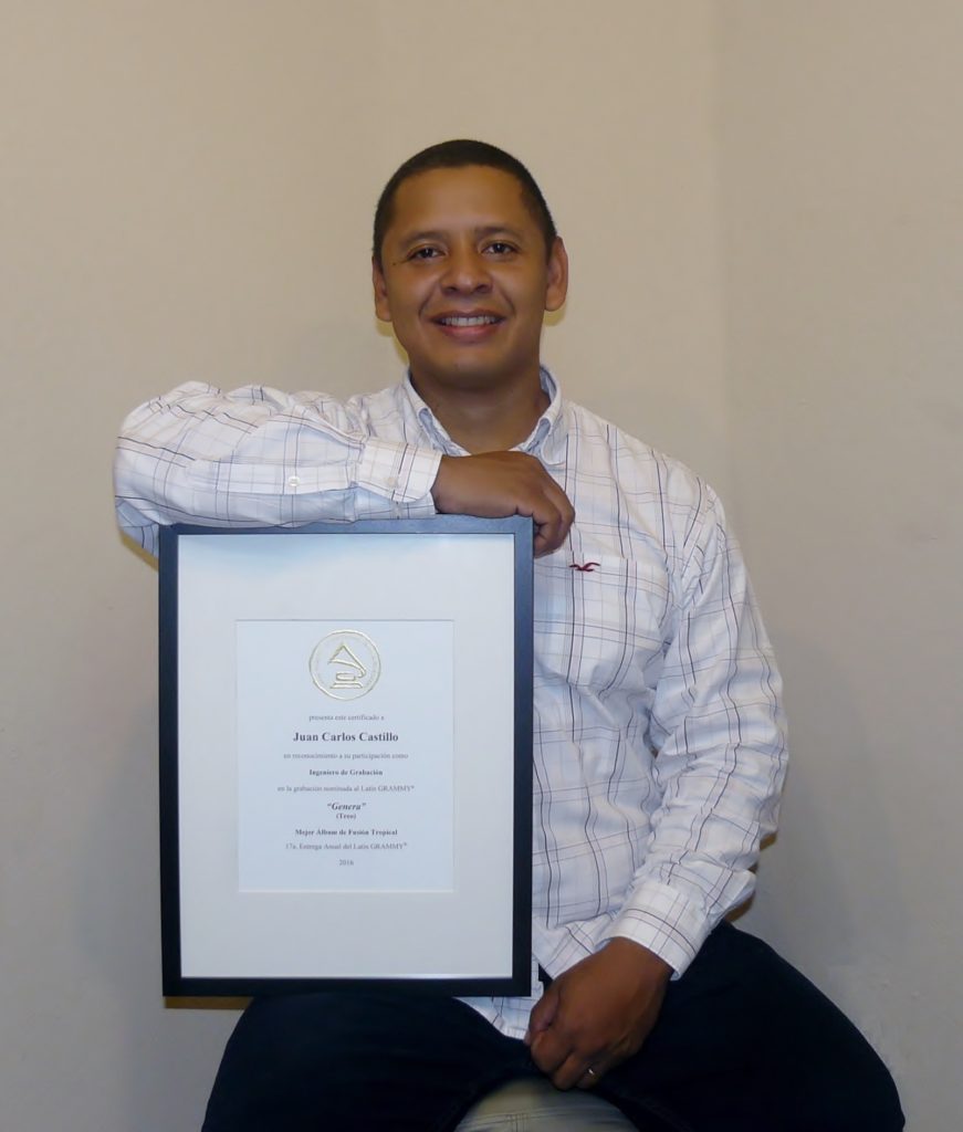 El venezolano Juan Carlos Castillo, quien se desempeña como productor, manager e Ingeniero de Sonido, recibe un merecido reconocimiento de parte de la Academia Latina de Artes y Ciencias de la Grabación, por su destacada participación y colaboración con el Grupo Treo, en la producción del disco que les llevó a ser nominados al Grammy Latino.