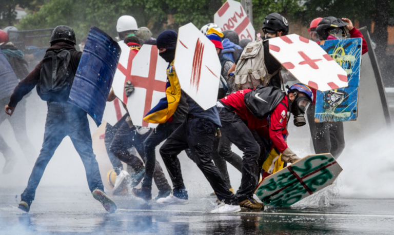 Sin embargo, no todo es tristeza y represión, ya que hace poco a través de las redes sociales se ha registrado uno de los momentos más insólitos y románticos en lo que va de protestas. Una pareja de enamorados de la resistencia, utilizaron de escenario las barricadas y cauchos quemados para sellar un pacto de amor. Si, así como lo lees, una joven pareja se comprometió en plena protesta en la entrada del distribuidor Santa Fe en la ciudad de Caracas.