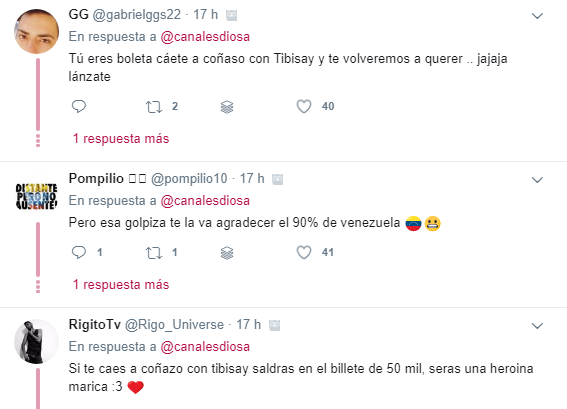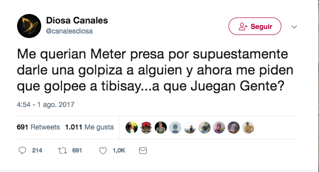 Recientemente se supo de la golpiza entre la vedette y la animadora Osmariel Villalobos, es por ello que este domingo, y ante los resultados de la Asamblea Nacional Constituyente, muchos de sus seguidores le pidieron que ahora le de una paliza a la Presidenta del Consejo Nacional Electoral, Tibisay Lucena.