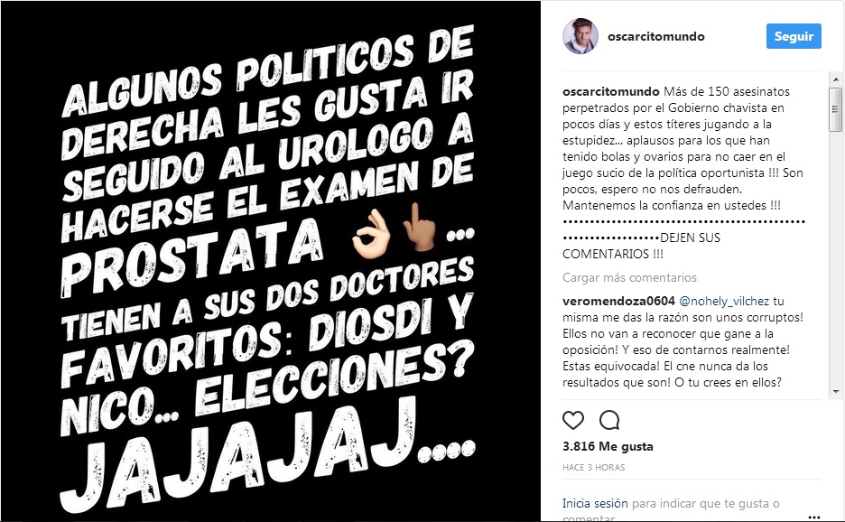 El cantante venezolano Oscarcito vuelve a causar polémica en las redes sociales, esta vez por enviar un fuerte mensaje a la derecha venezolana.