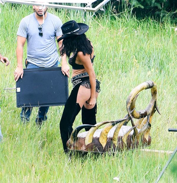 Junto a su compañera Alessandra Ambrosio posaron como una sexies rancheras. Las modelos lucieron unos sensuales atuendos de cuero en el set de filmación.