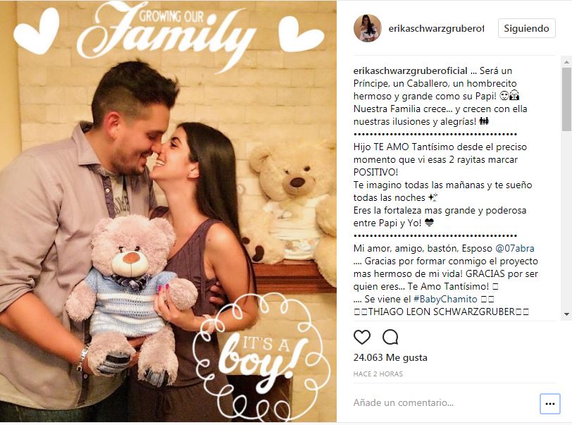 “Es un príncipe y su nombre será Thiago León Schwarzgruber». Con una linda foto en las redes sociales la actriz agradeció a su esposo por la más grande bendición.