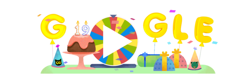 El Doodle del 19 aniversario de Google viene presentado como una divertida ruleta de juegos, mostrada para todos los visitantes al buscador, donde bastará con hacer clic sobre ella para activar su giro y obtener como regalo una partida de juego de alguno de sus 19 Doodles más icónicos, como aquel de Pac-Man.