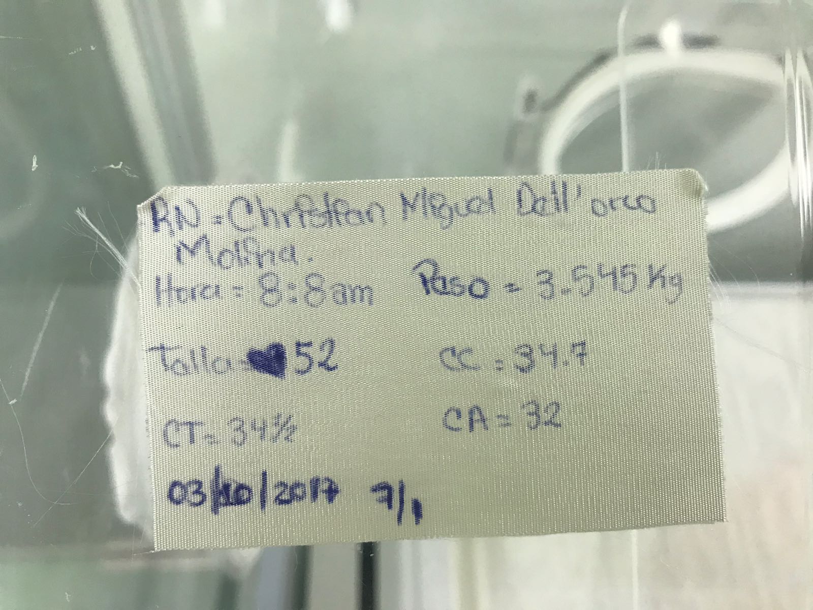 El bebé, que decidieron llamar Christian Miguel Dell’Orco Molina, nació a las 8:08 a.m., midió 52 centímetros y pesó 3.545 kilogramos.