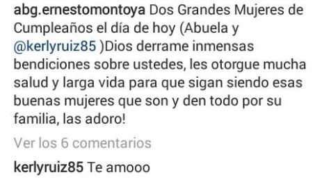 Casualmente, Kerly cumple el mismo día que la abuela de Montoya y, para honrarlas, el líder de los colectivos de 23 de enero compartió un collage de ambas en su red social y escribió «Dos grandes mujeres de cumpleaños el día de hoy (Abuela y Kerly Ruiz) Dios derrame inmensas bendiciones sobre ustedes, les otorgue mucha salud y larga vida para que sigan siendo esas buenas mujeres que son y den todo por su familia, las adoro!».