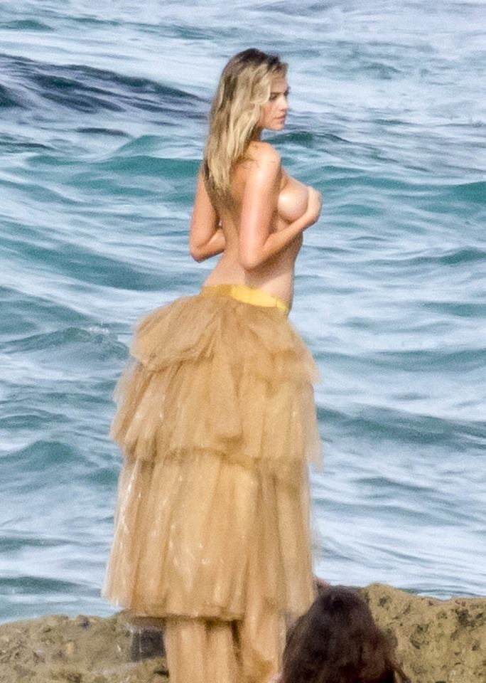 El incidente ocurrió cuando Upton posaba en topless en una roca para la revista Sports Illustrated en Aruba, pero las olas le jugaron una mala pasada y ocasionaron que perdiera el equilibrio.