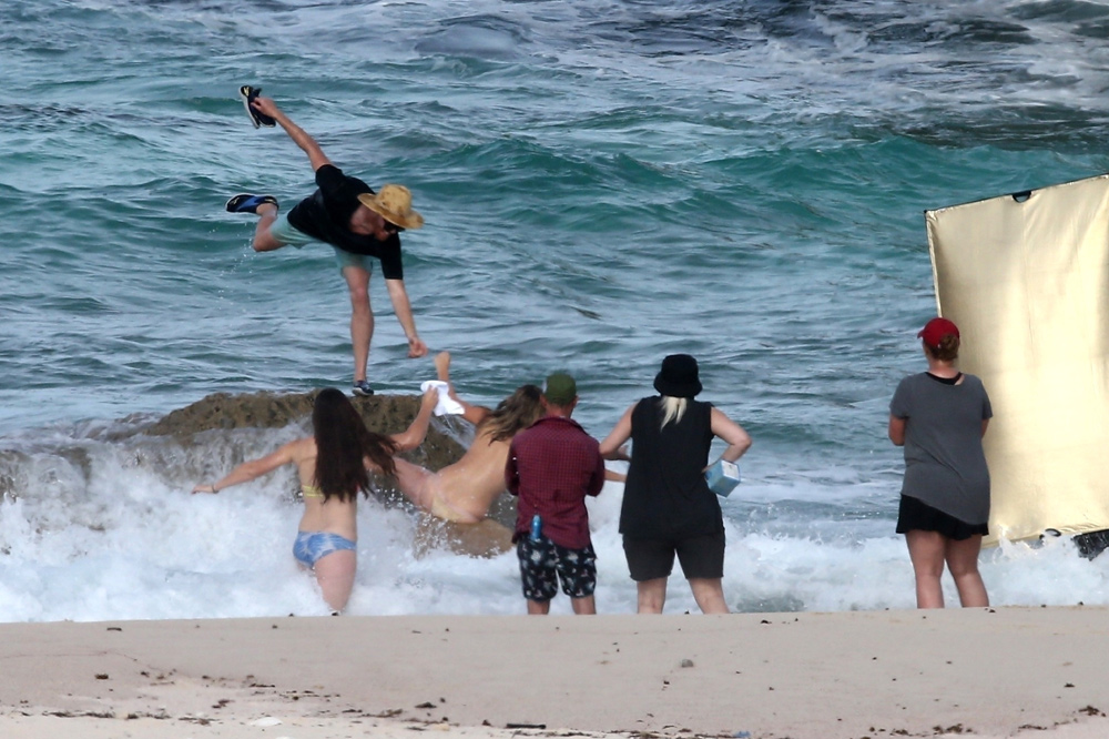 Afortunadamente la modelo no se lastimó y salió del agua sonriendo, mientras uno de los integrantes de la producción le otorgó una toalla para que se cubriera y los paparazzis no pudieran captar sus atributos.
