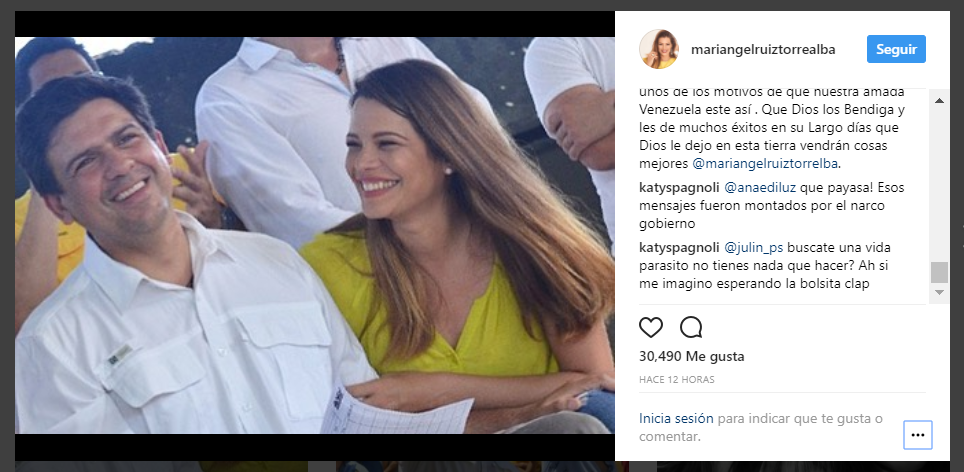 La animadora Mariángel Ruiz, pareja del ex candidato a la gobernación de Miranda, Carlos Ocariz, dedicó un mensaje a su novio en su cuenta Instagram, resaltando su admiración por él y por su integridad, lucha y amor por el país.