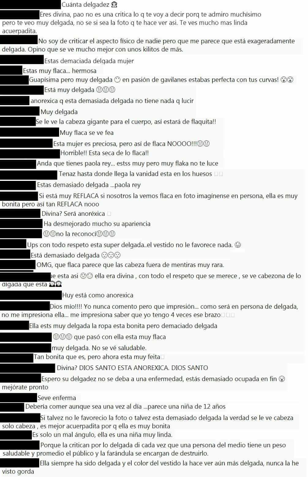 Las críticas comenzaron a bombardear las redes sociales de la actriz, cuando sus seguidores empezaron a juzgar el aspecto físico de Rey. Algunos aseguraban que no se veía bien debido a que estaba muy delgada y la acusaron de estar «enferma» así como que preferían como lucía cuando era una de las hermanas Elizondo.
