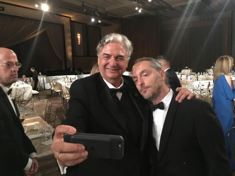 La fiesta, que incluyó un selecto menú de Wolfgan Puck, entre ensaladas, salmón y champagne, inició con el desfile de celebridades por la alfombra roja que se dieron cita en el Ray Dolby Ballroom. Iñárritu, quien llegó acompañado de su esposa María Eladia, estuvo rodeado de sus amigos Salma Hayek, Alfonso Cuarón, Guillermo del Toro, Gael Garcia y Emmanuel Lubezki, este último encargado de la fotografía de Carne y Arena.