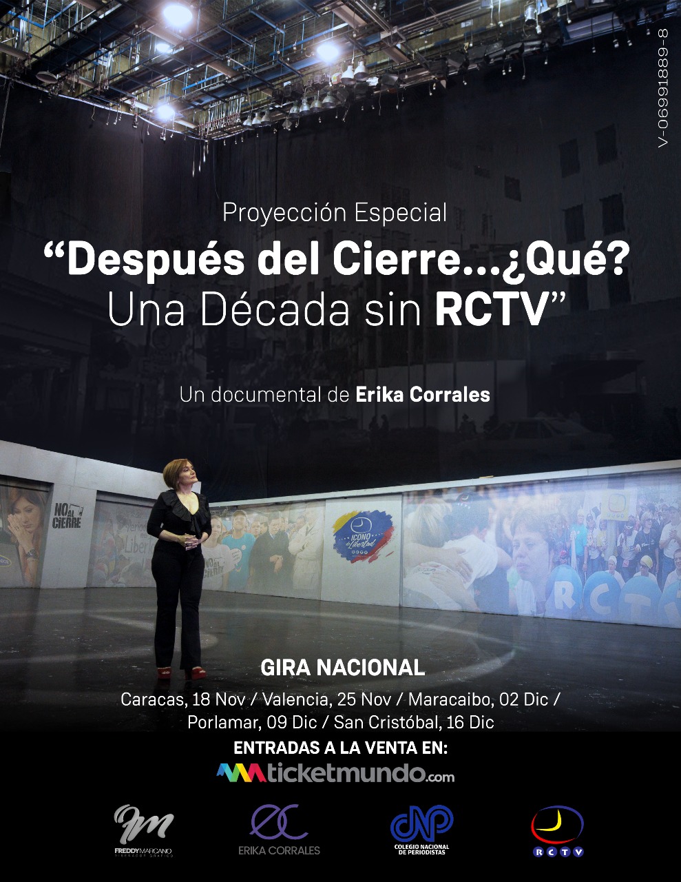 El documental “Después del cierre… ¿Qué? Una década sin RCTV”, que fue estrenado el pasado mes de mayo, ahora estará en la pantalla grande para conmemorar los 64 años que cumpliría RCTV como canal de televisión abierta, el próximo 15 de noviembre.