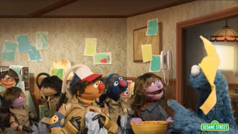 En la producción, marionetas de Plaza Sésamo interpretan a personajes del programa, principales y secundarios, como Eleven y Mike, durante su celebración de Halloween, registrada en la última temporada.