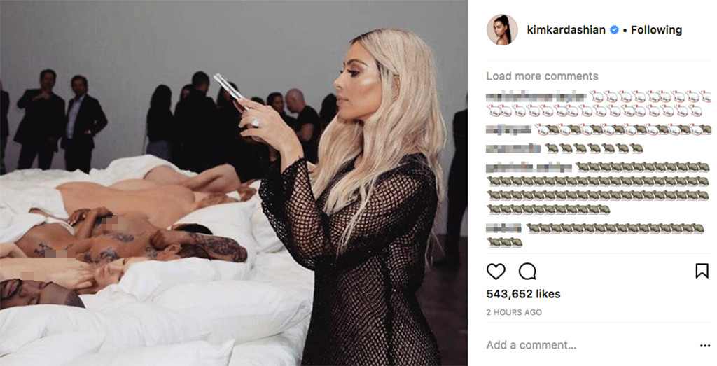 Este lunes, la socialité Kim Kardashian publicó una fotografía en su cuenta de Instagram de la exhibición del video musical de Famous, el tema de Kanye West en el que aparecen estatuas de cera de los cuerpos desnudos de Taylor Swift, Donald Trump, Chris Brown, Amber Rose, Kim Kardashian, Rihanna, Chris Brown y otros artistas.