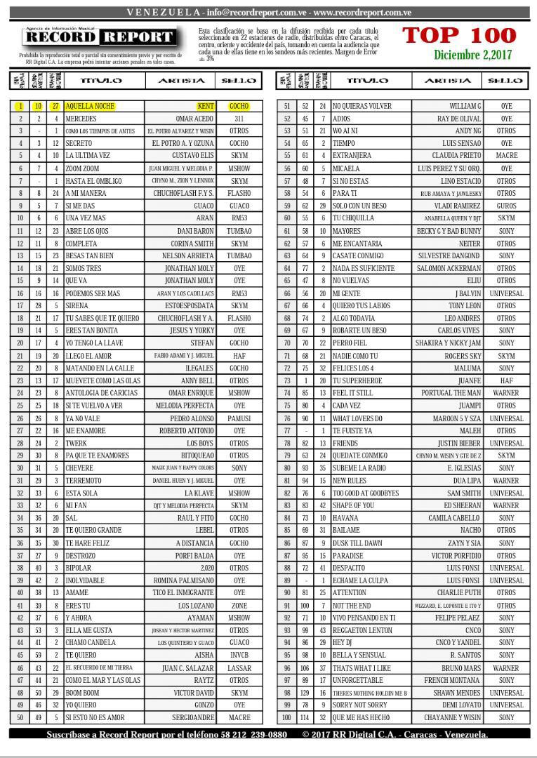 Sin duda el 2017 ha sido el año de Kent, con Aquella Noche con la que no ha parado de dar de que hablar, y que ha sonado insistentemente en las principales carteleras radiales , con una increíble aceptación y de la mano de su casa productora ¨Tango Producción¨ con la que ha llegado a pisar nuevos terrenos musicales que le han abierto las puertas en esta nueva etapa de su carrera, y que además le ha permitido hoy día celebrar su posición en el primer lugar del récord report en el Top 100.