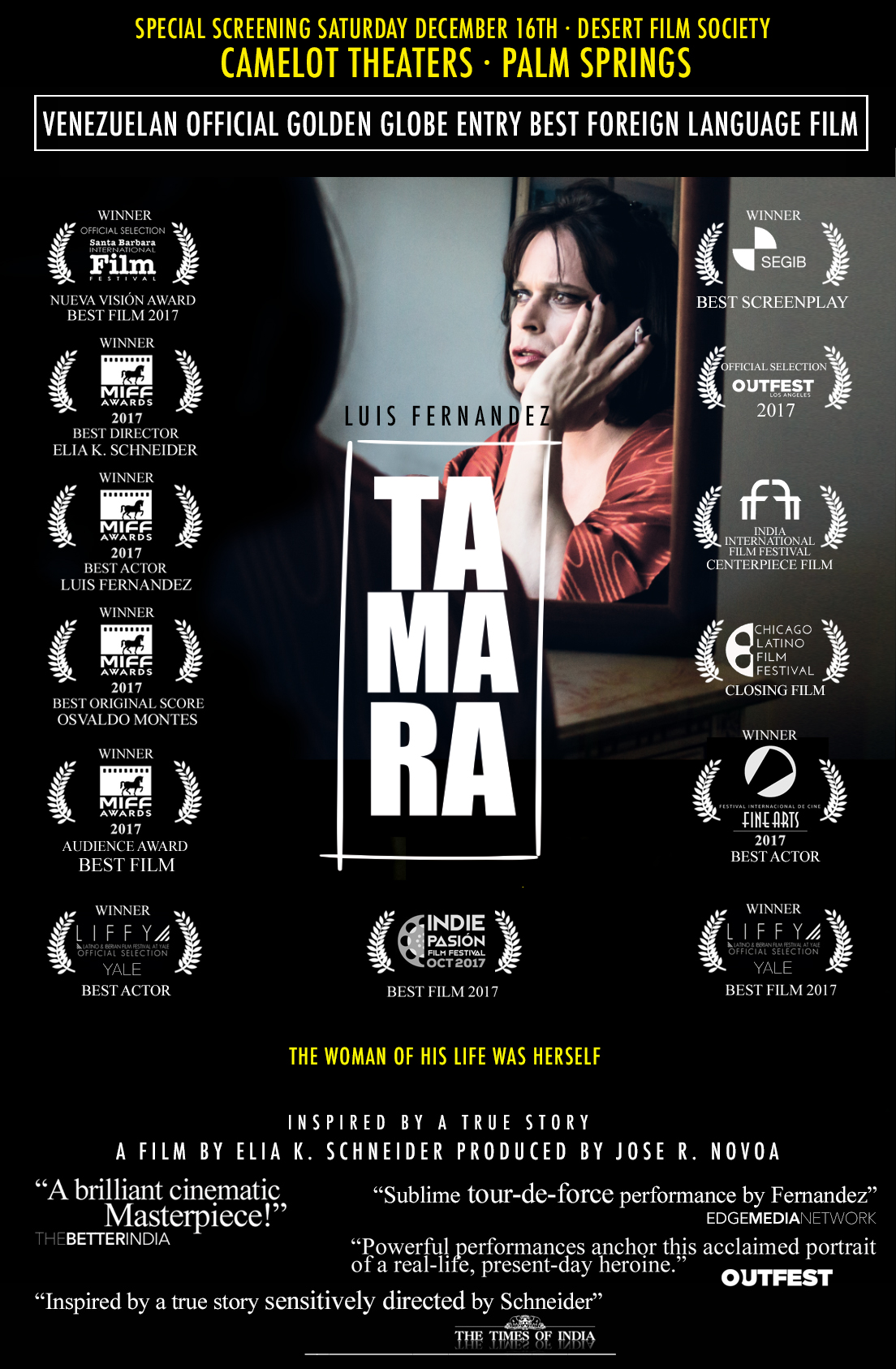 El film Tamara dirigido Elia K. Schneider, y producido por Jose Ramon Novoa, fue presentada el pasado sábado 16 de diciembre ante el Desert Film Society, Sociedad Cinematográfica de Palm Springs, California cuyo objetivo es interactuar con los realizadores y promover la reflexión a través del cine. En el evento estuvieron la directora Elia K Schneider, el productor José Ramón Novoa y el actor Luis Fernández.